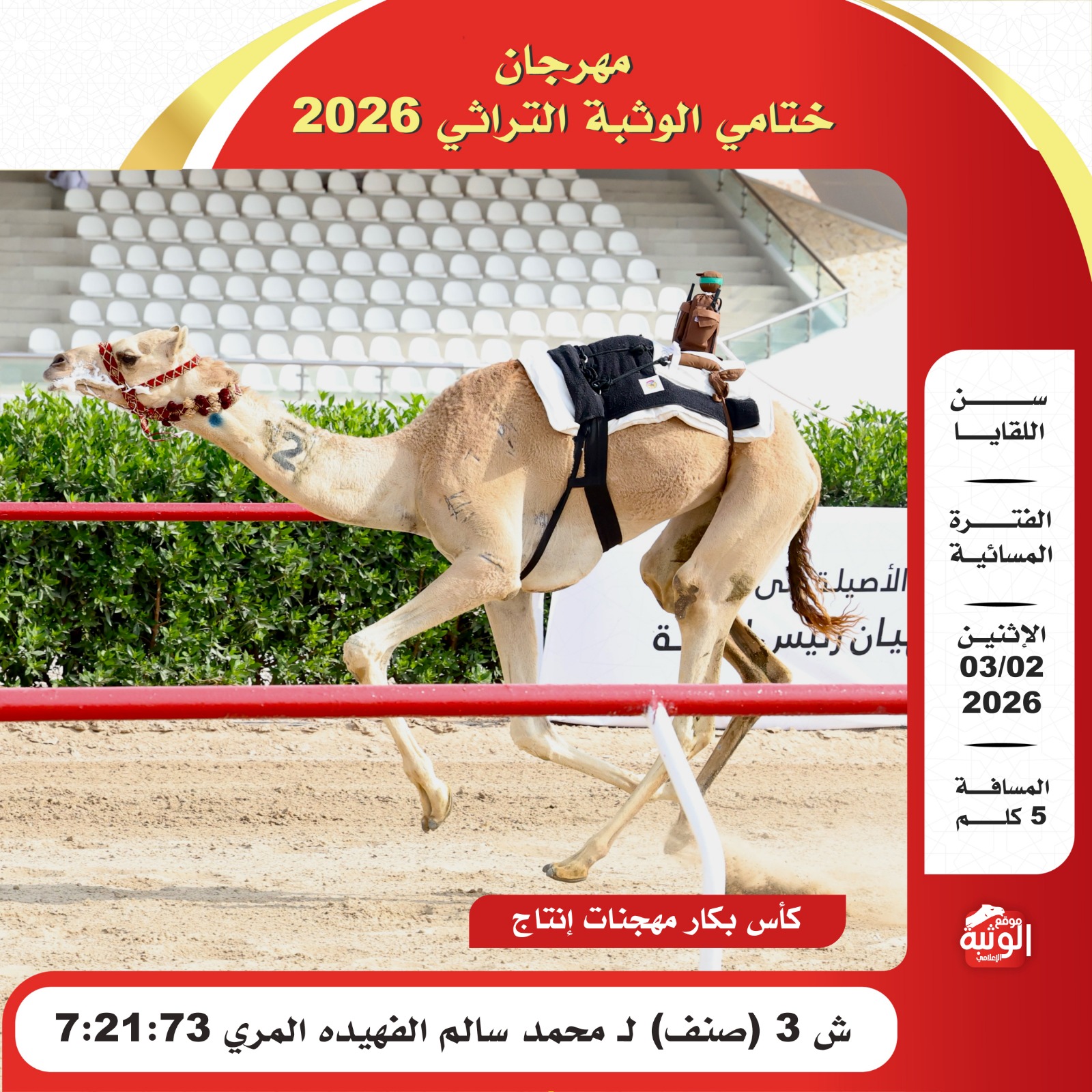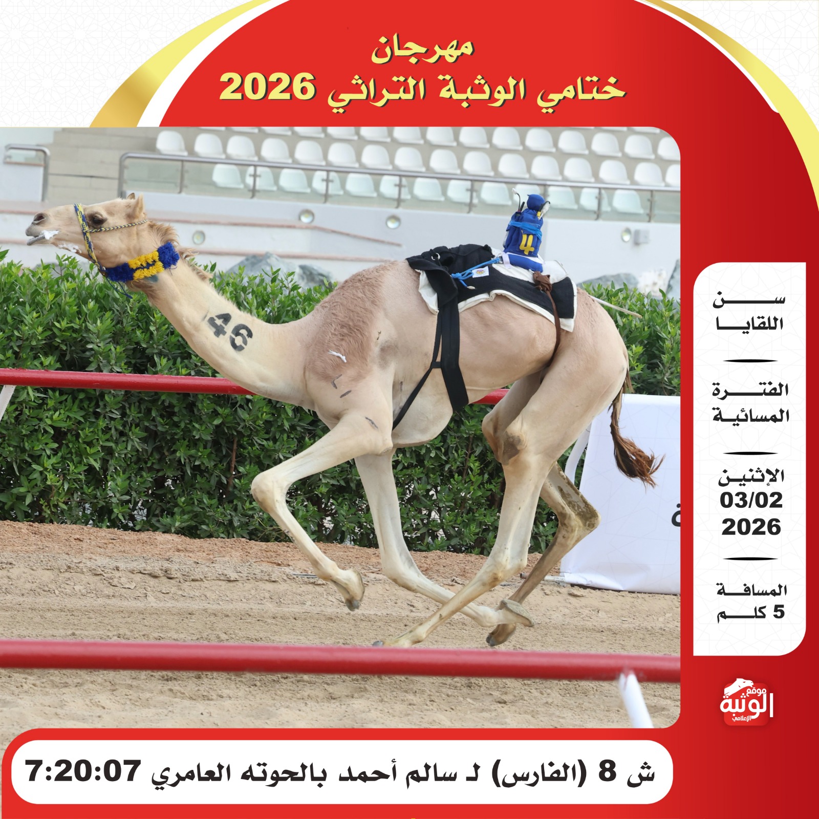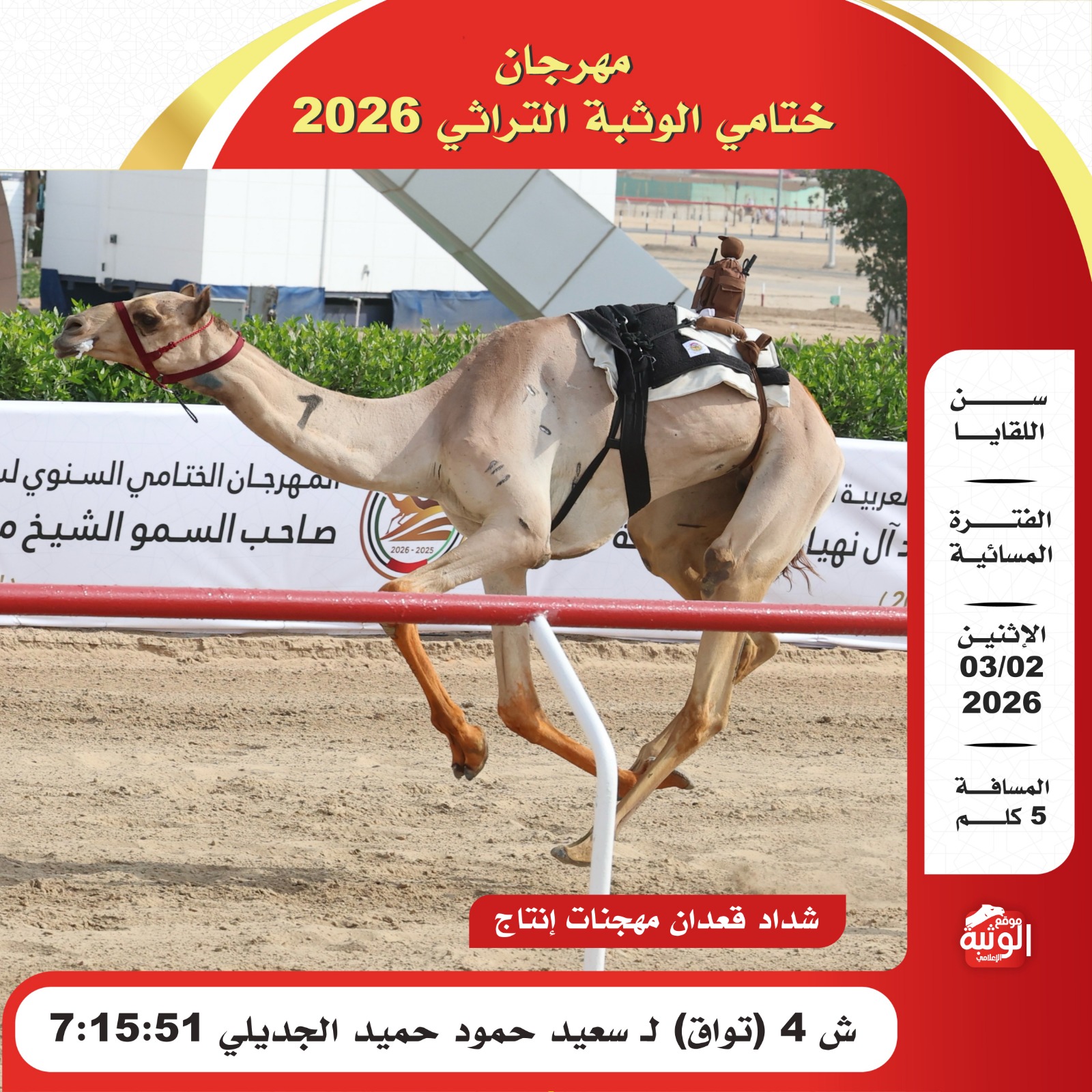 موقع الوثبة الإعلامي , الموقع الأول في دولة الأمارات العربيه المتحدة , ووجهة أهل الهجن لمتابعة السباقات بمياد
